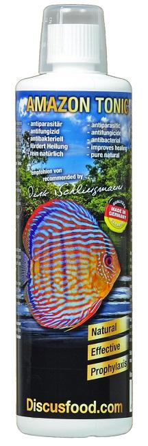 O Amazon Tonic é seguro e fácil de usar. Dosagem recomendada 10 ml por 100 l. Se o peixe não se sentir bem ou para profilaxia re-gular, re-administrar 10 ml por 100 l. Mesmo uma overdose múltipla é inofensiva para os peixes. O Amazon Tonic é um produto natural puro. A vida útil é de cerca de 2 anos. Proteja-o do calor forte. É otimamente em combinação com a Natural Humin .