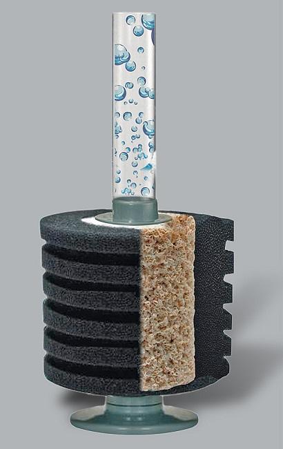 Filtro biológico de alto desempenho Três tipos diferentes de filtração em um filtro são a base para as melhores características do filtro.1 Filtração química orgânica. O elevador de ar patenteado garante uma turbulência ideal e uma entrada otimizada de oxigênio na água. Por outro lado, o CO2 é desgaseificado em grande quantidade. 2.Glass, cerâmica e pedra natural formam a base para a filtração biológica altamente eficiente. Devido a um processo de alta temperatura, uma superfície altamente porosa é gerada. É ideal para a colonização de bactérias filtrantes. Em comparação com outros biofiltros de cerâmica, é 3 a 5 vezes mais eficiente. Isto leva a uma qualidade de água mais estável e a um melhor equilíbrio ecológico.3 Uma esponja de múltiplas camadas é usada como pré-filtro. Absorve rapidamente as impurezas da água e limpa eficazmente o sedimento em suspensão. O design patenteado e a estrutura permitem uma alta densidade de bactérias nitrificantes. Isso resulta no desempenho eficiente do filtro, na longevidade do filtro e no fácil manuseio durante a limpeza. Para usá-lo, conecte apenas a mangueira de ar na peça de conexão. Item no. 30086Para tanques de até 350 litros (100 galões). Ao usar uma bomba de ar adequada, a saída de água pode chegar a mais de 1.000 litros / h. 30085Para tanques de até 150 Litros (100 galões). Ao usar uma bomba de ar adequada, a saída de água pode chegar a mais de 400 litros / h.