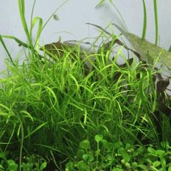Juncus repens is a grass-like marsh plant which also grows strongly under water. This small species of rush is native to southern and eastern USA and inhabits marshy shallow water. In the aquarium, Juncus repens is easy to care for and resilient. Soft water with a good CO2 supply promotes optimum growth. In combination with other grass-like plants, you can design decorative meadow landscapes. However, this creeping rush also makes an attractive feature as a “filler plant” between stones. With strong lighting and a good supply of micro-nutrients, the shoots can also become slightly reddish in colour.