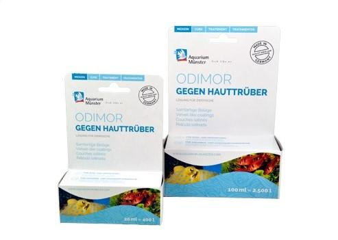 ODIMOR é um tratamento de peixe ornamentado especializado para doenças de veludo (Oodinium, Chilodonella, Ichthybodo, Trichodina, etc.). Os sintomas visíveis incluem filmes de cinza claro a escuro, de veludo ou manchas quase visíveis que, durante os estágios subsequentes, se espalham para as brânquias, barbatanas e todo o corpo. As brânquias permanecem abertas eo peixe exibe aumento da atividade respiratória que pode atingir os níveis de dificuldade respiratória aguda.
