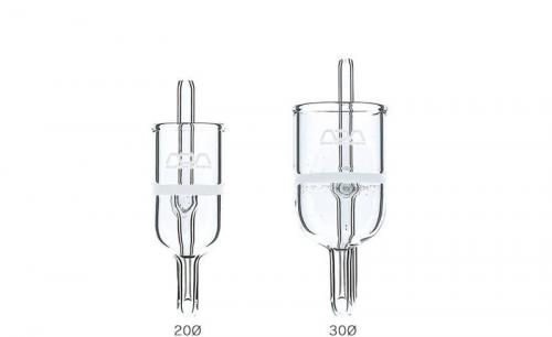 This is the Pollen Glass with a wider diffusion filter, which is placed on the side panel of aquarium. Its unique J-shape glass pipe design sits elegantly inside the aquarium tank. 20Ø is designed for 60cm tank with fully grown sun plants, such as Riccia that requires much CO2 and 30Ø diffuses CO2 effectively for 75-90cm tank. Pollen Glass Large is made of glass including J-shape parts. Careful handling is required when attaching or detaching suction cup.